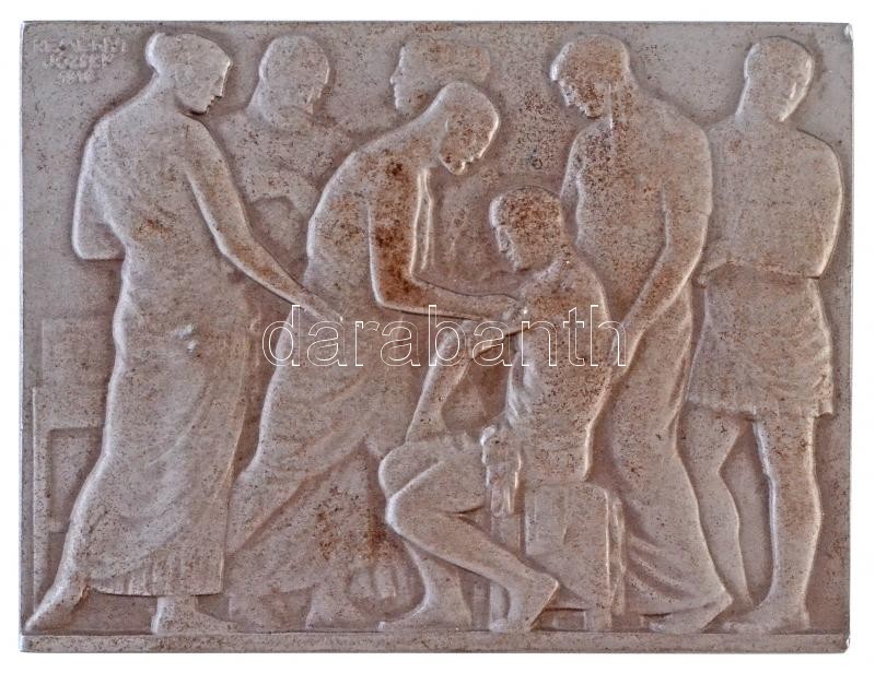 Reményi József (1887-1977) 1916. "Kötözőhely" fém plakett, Éremkedvelők Egyesületének tagsági érme, peremén "ÉKE 1916", sorszámozott, 149-es sorszámmal (200,17g/69x90mm) T:2 / Hungary 1916. "Kötözőhely" metal plaque, membership medal of the Association of Medal Enthusiasts, with "ÉKE 1916" and serial number "149" on edge Sign: József Reményi (200,17g/69x90mm) C:XF