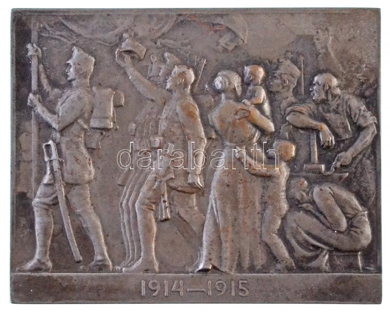 Telcs Ede (1872-1948) 1915. "Hadbavonulók 1914-1915" vert egyoldalas hadifém plakett, Éremkedvelők Egyesületének tagsági érme, peremén "ÉKE 1915", sorszámozott, 136-ös sorszámmal (150,54g/82x65mm) T:2 / Hungary 1915. "Hadbavonulók 1914-1915" one sided metal war plaque, membership medal of the Association of Medal Enthusiasts, with "ÉKE 1915" and serial number "136" on edge Sign: Ede Telcs (150,54g/82x65mm) C:XF