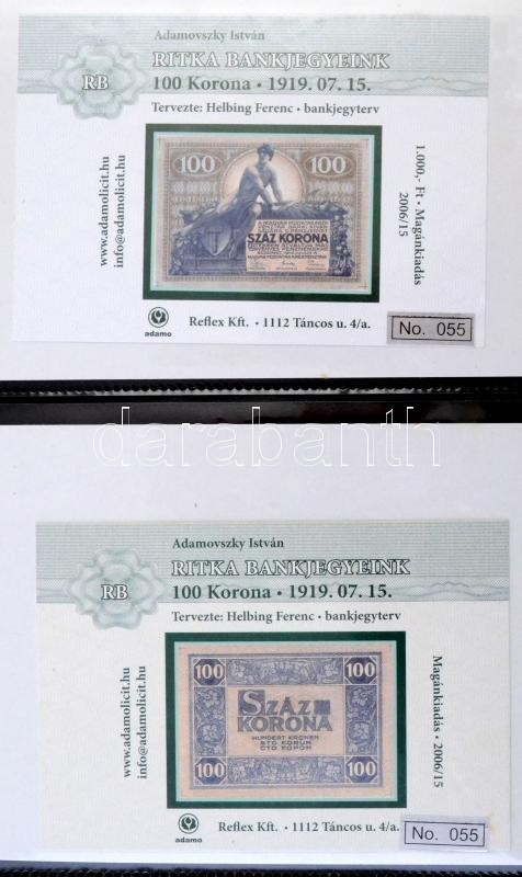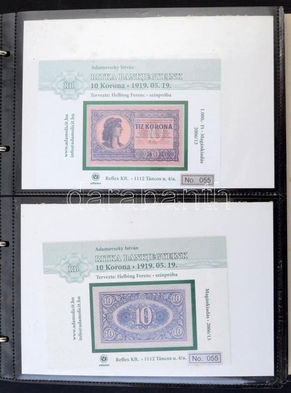 2005-2008. 46db klf emlékív ritka magyar bankjegyekről albumba rendezve T:I,I- / Hungary 2005-2008. 46pcs of diff souvenir sheets about rare Hungarian banknotes in album C:UNC,AU