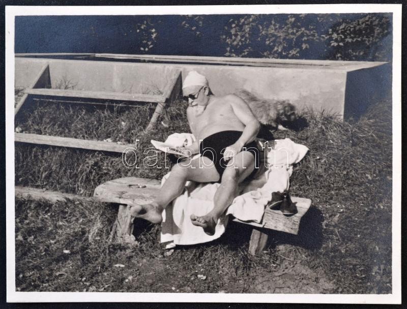 Procopius Béla (1868-1945) numizmatikus fürdőruhás fotója (88x106mm) / Photo of Béla Procopius (1868-1945) Hungarian numismatist in bathing suit (88x106mm)