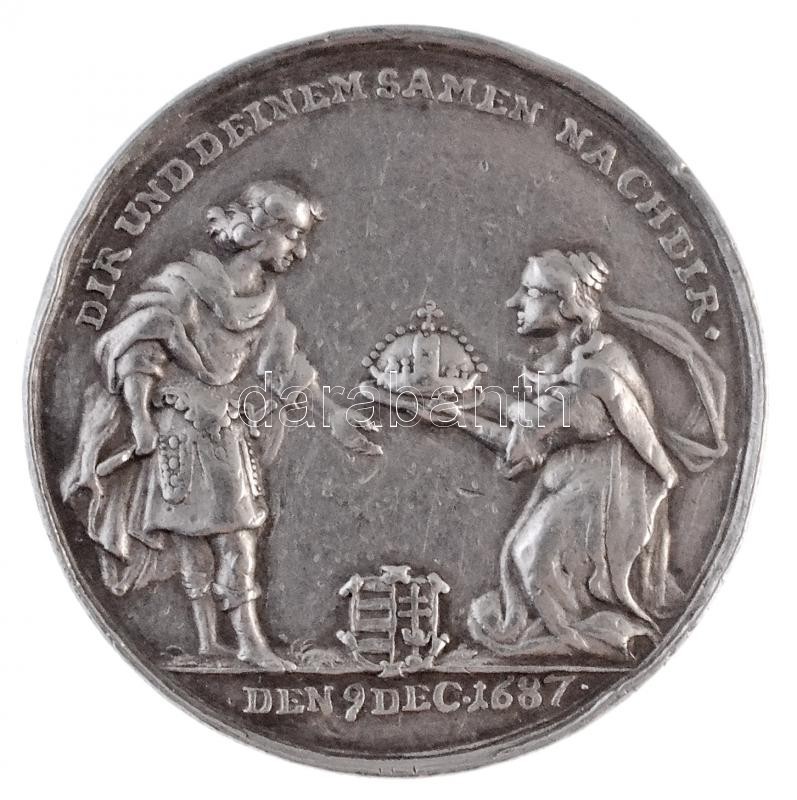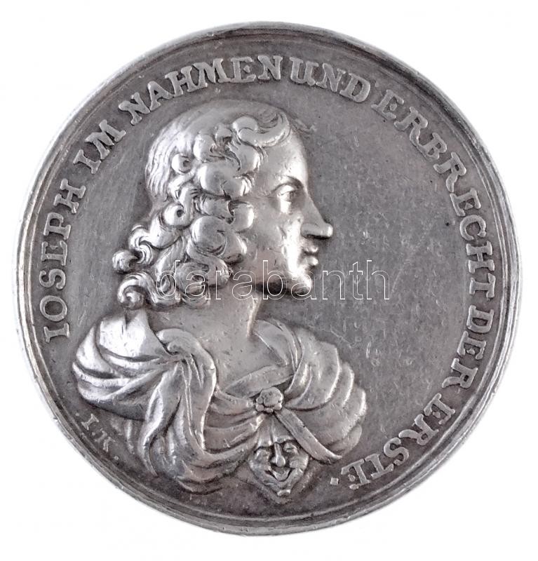 Ausztria 1687. "IOSEPH IM NAHMEN UND ERBRECHT DER ERSTE / DIR UND DEINEM SAMEN NACH DIR" I. József trónra lépésének alkalmából kiadott, jelzetlen koronázási Ag emlékérem. Szign.: Johann Kittel (15,98g/34mm) T:2,2- / Austria 1687. "IOSEPH IM NAHMEN UND ERBRECHT DER ERSTE / DIR UND DEINEM SAMEN NACH DIR" commemorative Ag medallion without hallmark, issued for the coronation of Joseph I. Sign.:Johann Kittel (15,98g/34mm) C:XF,VF