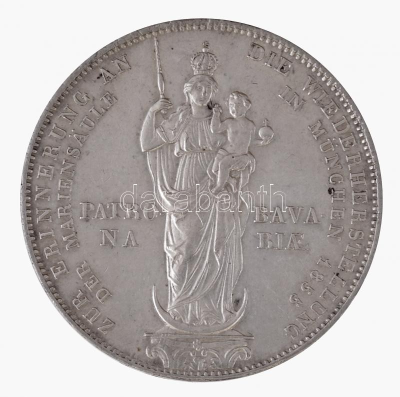 Német Államok / Bajorország 1855 2G Ag "II. Miksa / A Mariensäule... https://www.darabanth.com/en/32-Major-auction/32.1/Numismatics/Worldwide-silver-and-metal-coins~13437/Nemet-Allamok-Bajororszag-1855-2G-Ag-II-Miksa-A-Mariensaule-helyreallitasa-24-24g-T~II2044965