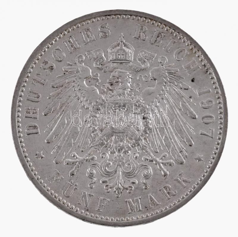 Német Államok / Szászország 1907E 5M Ag "III. Frigyes Ágost"... https://www.darabanth.com/en/32-Major-auction/32.1/Numismatics/Worldwide-silver-and-metal-coins~13437/Nemet-Allamok-Szaszorszag-1907E-5M-Ag-III-Frigyes-Agost-27-84g-T2-German-States-Sax~II2045743