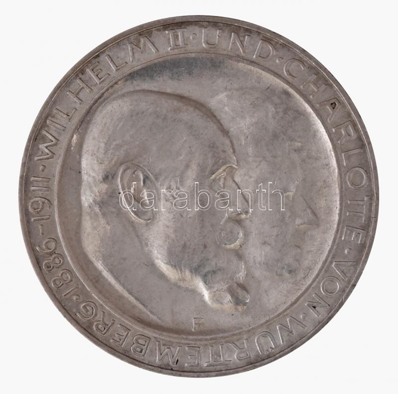 Német Államok / Wurttemberg 1911F 3M Ag "II. Vilmos / Ezüstlakoda... https://www.darabanth.com/en/32-Major-auction/32.1/Numismatics/Worldwide-silver-and-metal-coins~13437/Nemet-Allamok-Wurttemberg-1911F-3M-Ag-II-Vilmos-Ezustlakodalom-16-63g-T2-German-State~II2044895