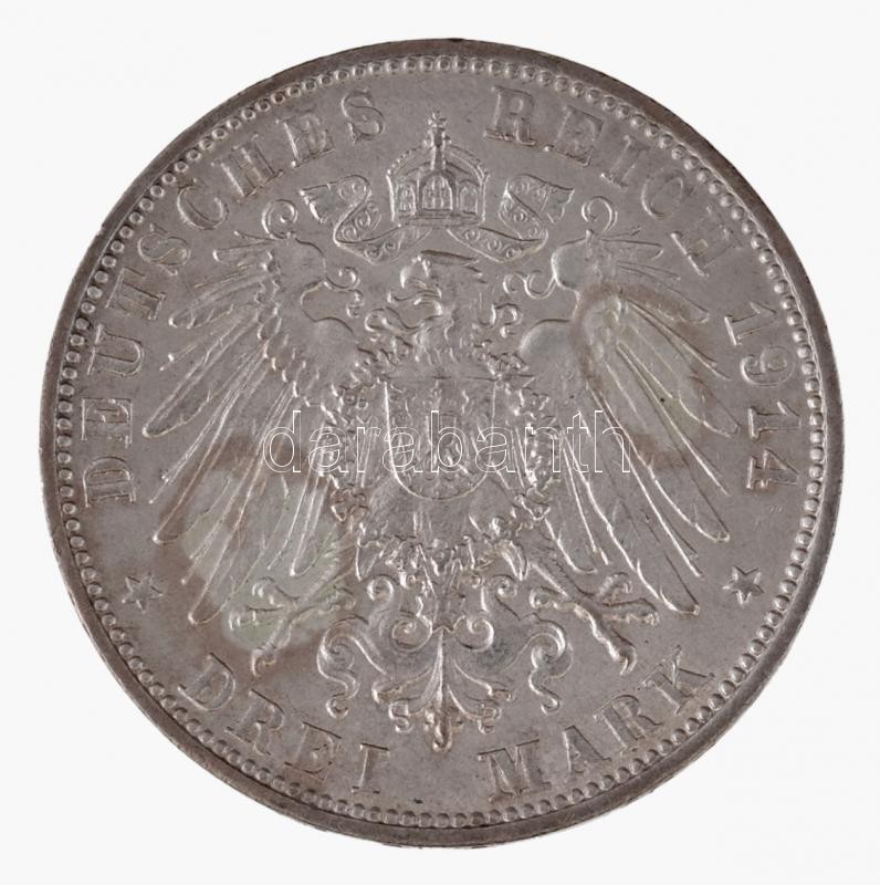 Német Államok / Wurttemberg 1914F 3M Ag "II. Vilmos" (16,68g... https://www.darabanth.com/en/32-Major-auction/32.1/Numismatics/Worldwide-silver-and-metal-coins~13437/Nemet-Allamok-Wurttemberg-1914F-3M-Ag-II-Vilmos-16-68g-T2-kis-patina-German-States-Wur~II2044902