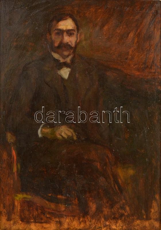 Kernstok Károly (1873-1940): Molnár Viktor képmása. Olaj, fatábla, jelzett, pótolt keretben, hátoldalán Almásy-Teleki Éva Műintézeti raglappal, (Kaposi Molnár Viktor 1859-1918) művelődéspolitikus, miniszteri tanácsos, közoktatási államtitkár, 34×24 cm