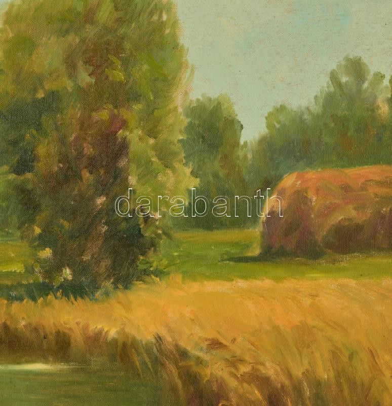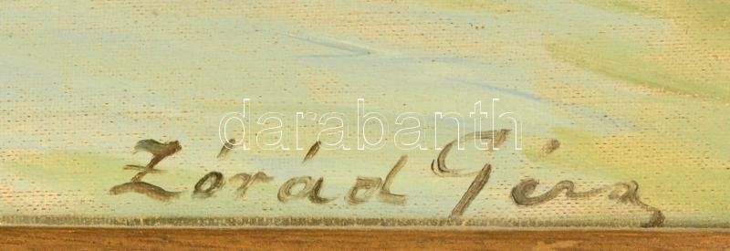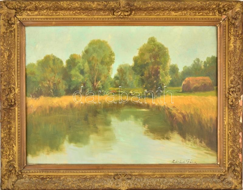 Zórád Géza (1896-1959): Kaszáló férfi a tópartnál. Olaj, vászon, jelze...