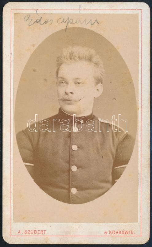 1878 Boleslav Pszorn, Krakkóban született, később a boszniai Tuzlában dolgozó lengyel bányamérnök, Anna Pszorn nagyváradi gyógyszerész édesapja, a fotón a leobeni bányászati akadémia diákjaként, keményhátú fotó, jó állapotban, 10,5×6,5 cm / Boleslav Pszorn mining engineer, student of the mining academy in Leoben, Austria
