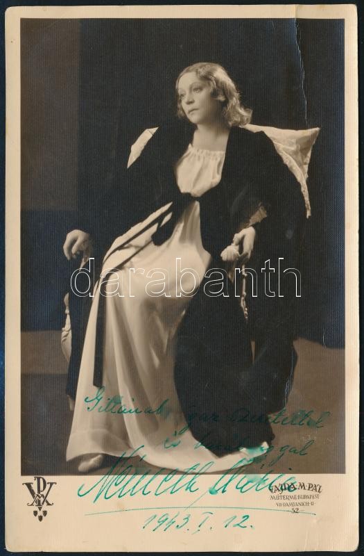 1943 Németh Mária (1897-1967) opera-énekesnő dedikált fotója, Vajda M....