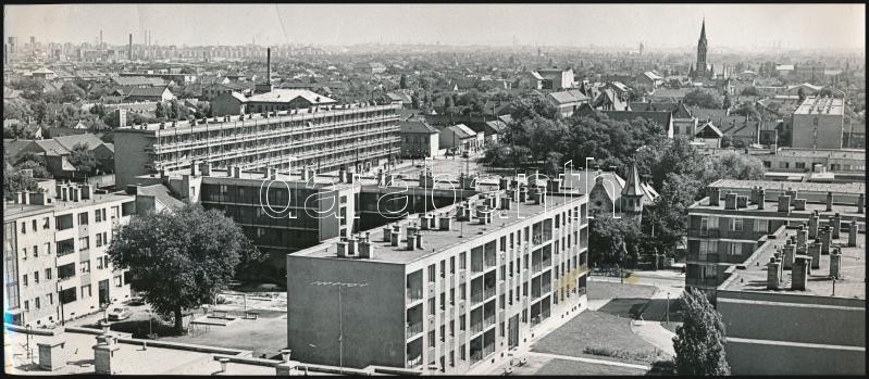 1968 Budapest, Pesterzsébet látképe, felületén törésnyomok, 13×30 cm