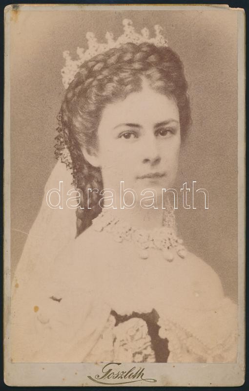 cca 1867 Erzsébet királyné (Sisi) koronázási portréja, keményhátú fotó... https://www.darabanth.com/en/32-Major-auction/32.1/Photography/Photo~13391/cca-1867-Erzsebet-kiralyne-Sisi-koronazasi-portreja-kemenyhatu-foto-Goszleth-mutermeb~II2043986