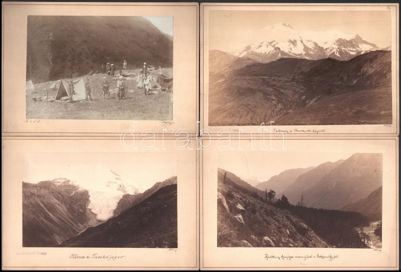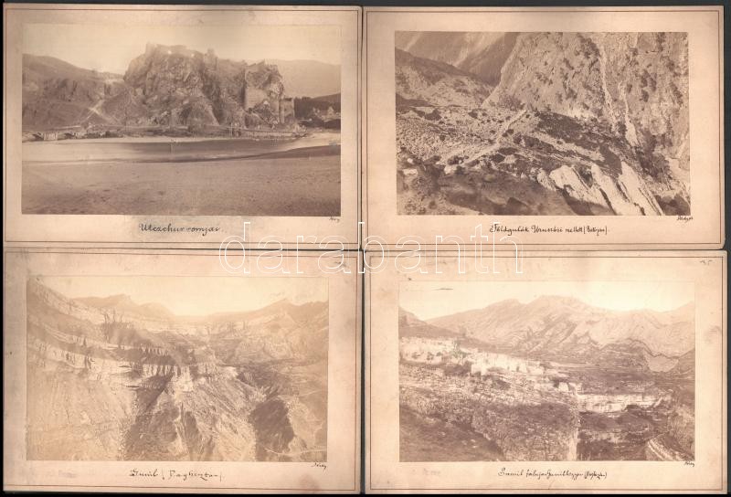 cca 1884 Déchy Mór kaukázusi expedÃcióján készült, késÅ‘bb "A Kaukázus" c. kötetben (1905/1907) publikált felvételek, 11 db fotó, kartonra ragasztva, jelzettek, feliratozva, némelyiken útitársa, Schafarzik Ferenc geológus bélyegzÅ‘jével, 14,5×21,5 cm / cca 1884 Photographs taken by botanist Moritz von Déchy on his expedition to the Caucasus, later published in his work "Kaukasus" (1905), signed, with notes, 11 photographs, 14,5×21,5 cm