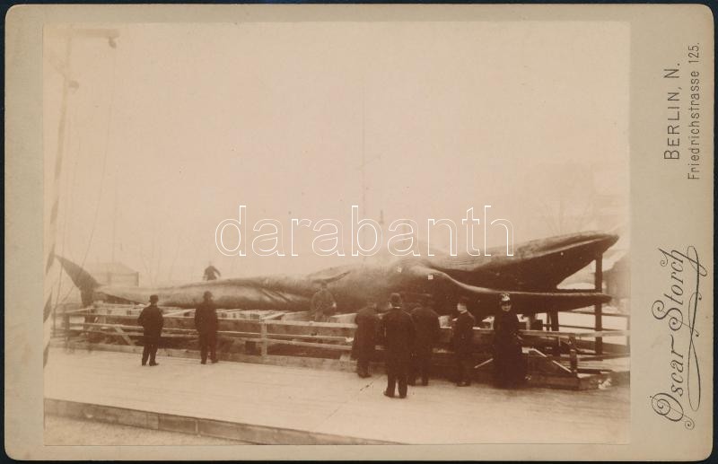 cca 1900 Kifogott bálna, keményhátú fotó Oscar Storch műterméből, 10×16 cm / whale