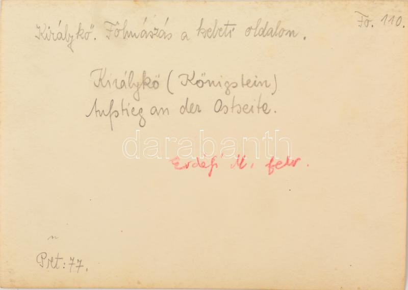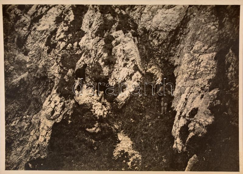 cca 1910 Királykő-hegység, felmászás a keleti oldalon, Erdélyi Mór felvétele, hátulján feliratozva, 11,5×16 cm / cca 1910 Munţii Piatra Craiului, photograph taken by Mór Erdélyi, with notes on its back, 11,5×16 cm