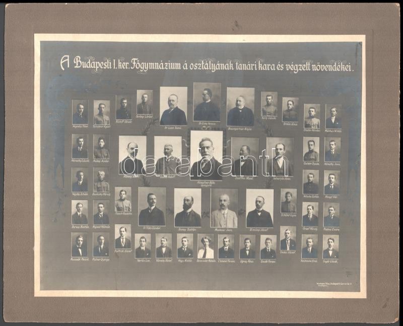 cca 1914 Budapest, I. ker. Főgymnázium tanárai és végzett tanulói, kis... https://www.darabanth.com/en/32-Major-auction/32.1/Photography/Photo~13391/cca-1914-Budapest-I-ker-Fogymnazium-tanarai-es-vegzett-tanuloi-kistablo-nevesitett-portr~II2034421