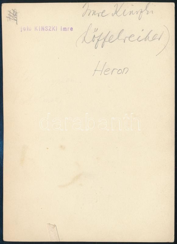 cca 1934 Kinszki Imre (1901-1945) budapesti fotóművész aláírással és pecséttel jelzett vintage fotóművészeti alkotása (Heron), 17,7x12,8 cm