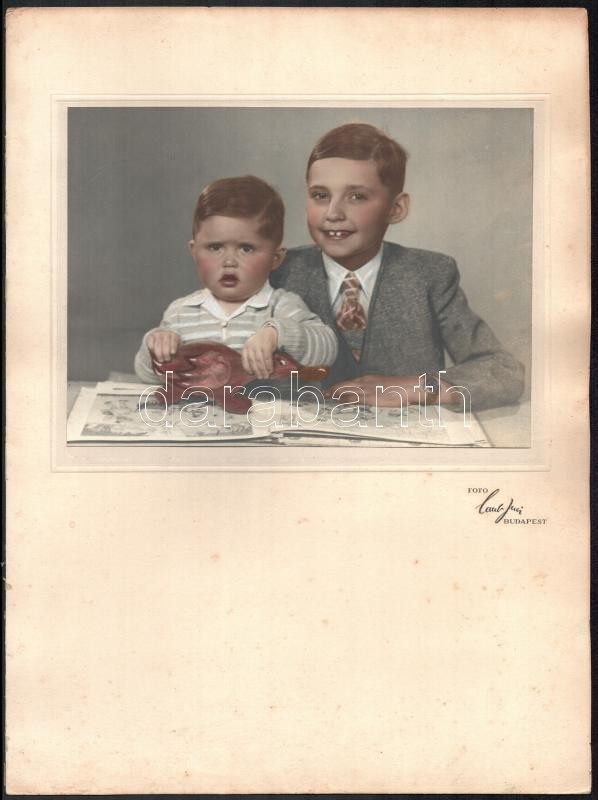 cca 1940 Laub Juci budapesti fényképész műtermében készült, kézzel színezett fotó, 17x23 cm, karton 39x29 cm