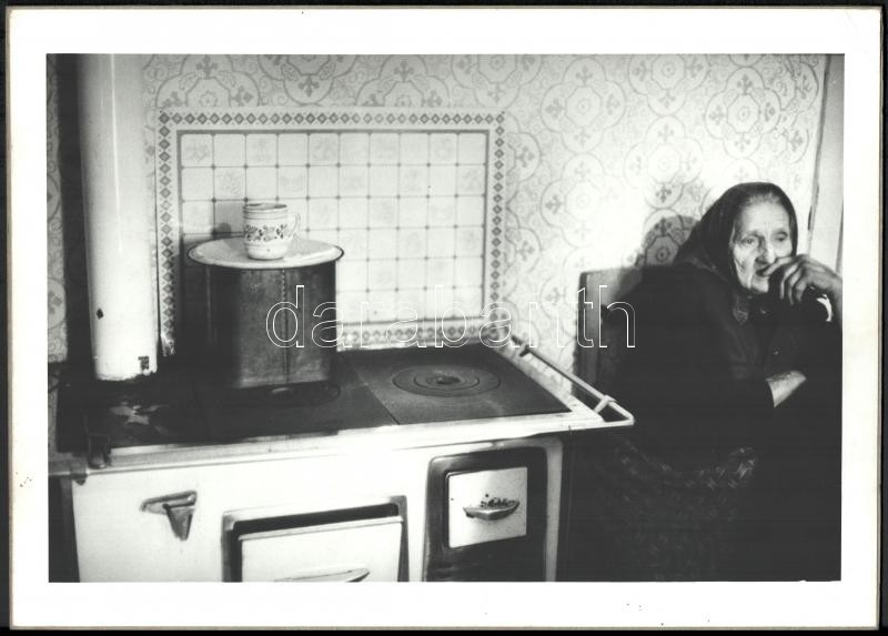 Description: cca 1975 Schmidt Andrea szegedi fotóművész feliratozott, vintage fotóművészeti alkotása, kasírozva (Várakozás), a magyar fotográfia szociofotó korszakából, 27,5x38,5 cm
