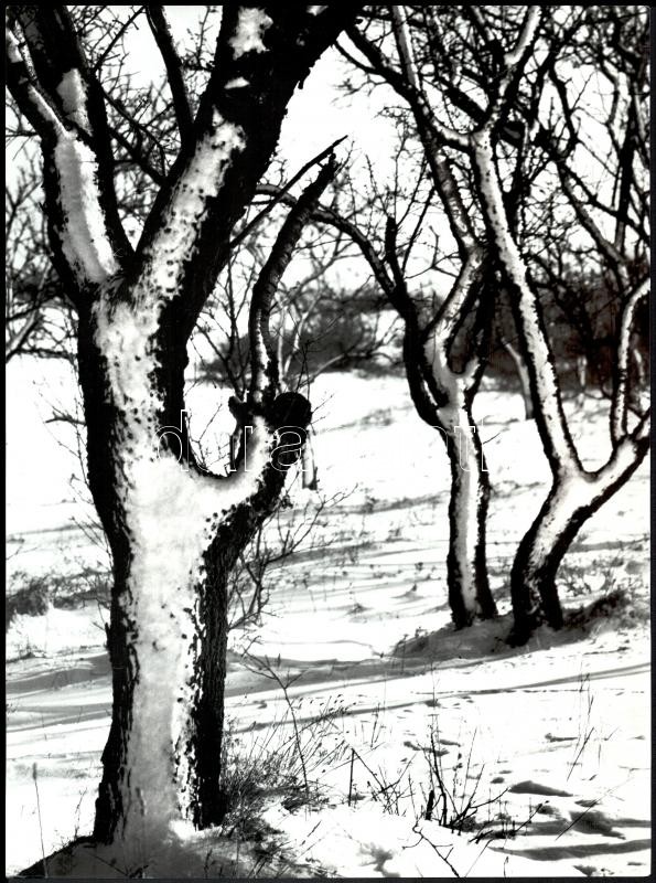 cca 1978 Gebhardt György (1910-1993) budapesti fotóművész hagyatékából feliratozott, vintage fotóművészeti alkotás (Szilvafák), 39,5x29,5 cm