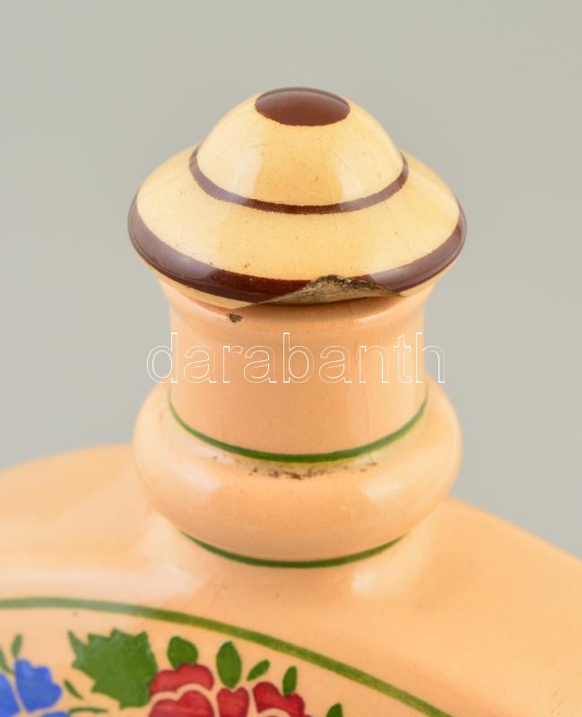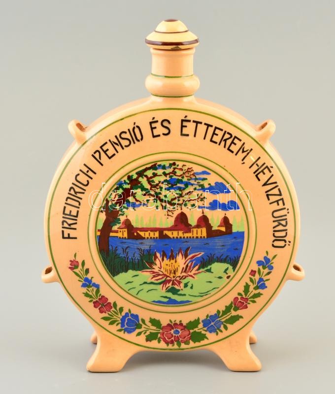 cca 1930 Hévíz: Friedrich Pensió és étterem hévizi emlék kulacs. Kézzel festett. Jelzett. Dugóján kis lepattanással 22 cm