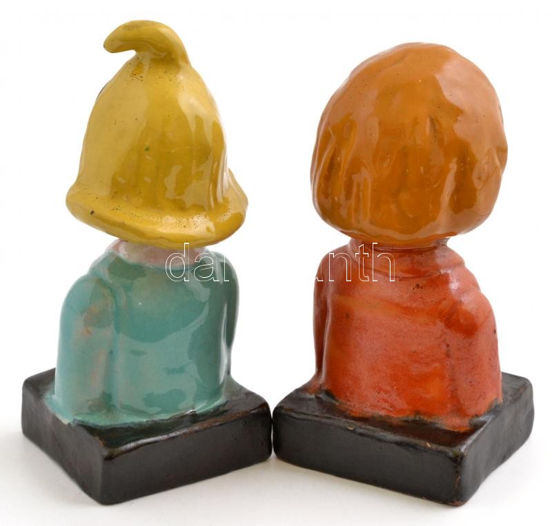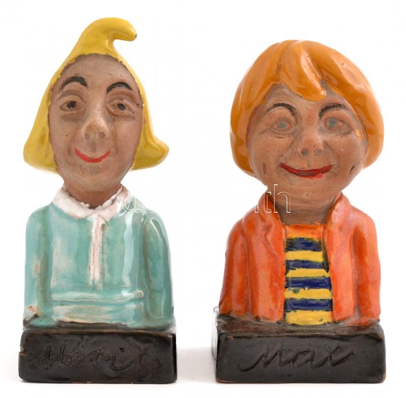 cca 1930 Max & Moritz büszt ( 2db), kézzel festett részben mázas k...