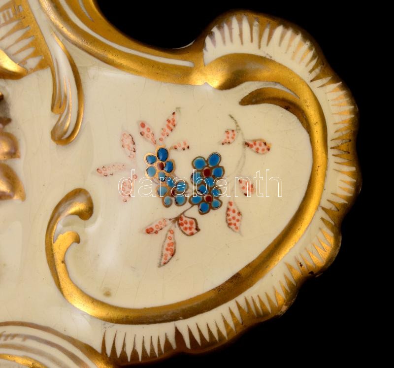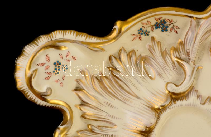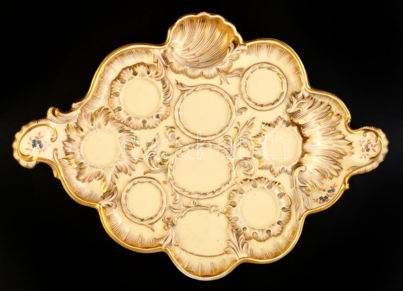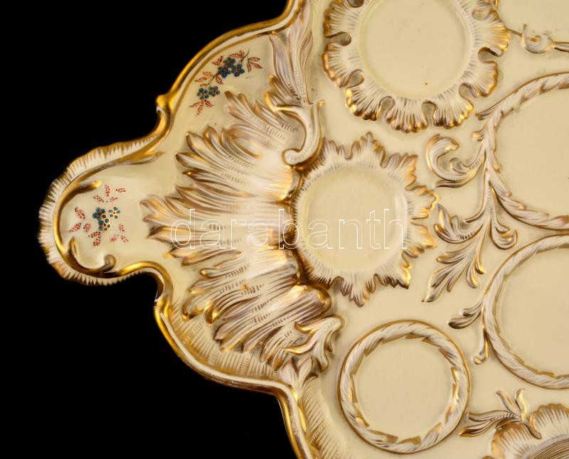 cca 1890 Fischer Budapest tálca, kézzel festett, aranyozott porcelánf...