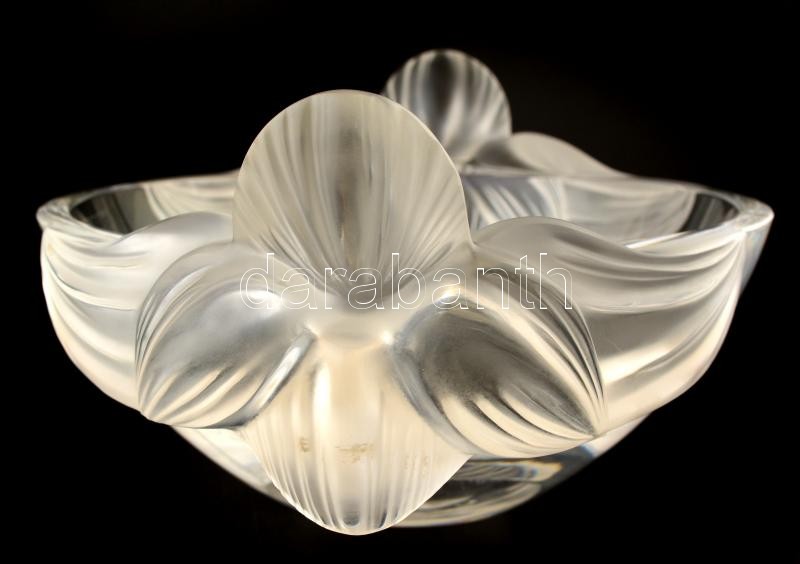 Description: Lalique "Loriol" tál, formába öntött, csiszolt és maratott kristályüveg, jelzett (Lalique France), XX. század második fele, talpán karcos / Lalique "Loriol" bowl (Vase), hallmarked, m:13 cm, 30×21 cm