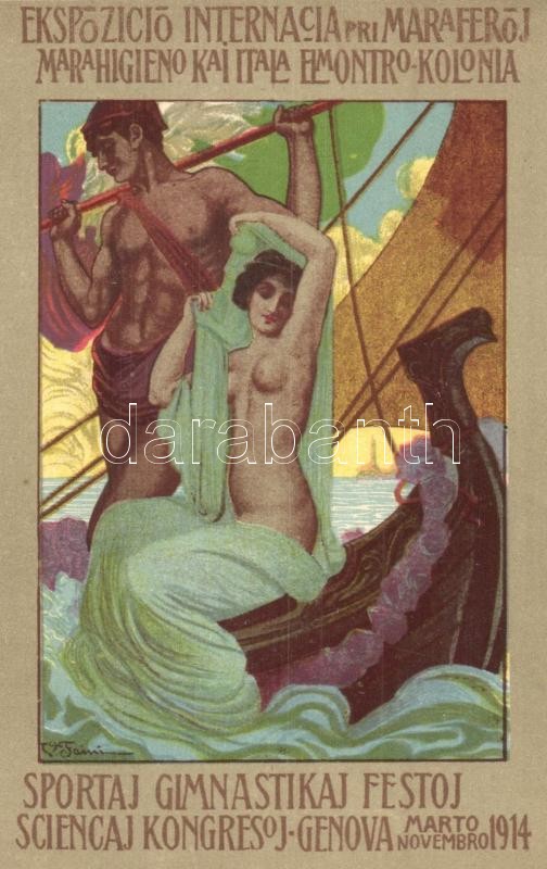 Description: 1914 Ekspozicio Internacia pri Mara Feroj, Mara Higieno kai Itala Elmontro Kolonia, Sportaj Gimnastikaj Festoj Sciencaj Kongresoj, Genova / International Exhibition of Marine Holidays, Marine Hygiene, including the Italian Colonial Exhibition. Esperanto edition s: Virgilio Faini