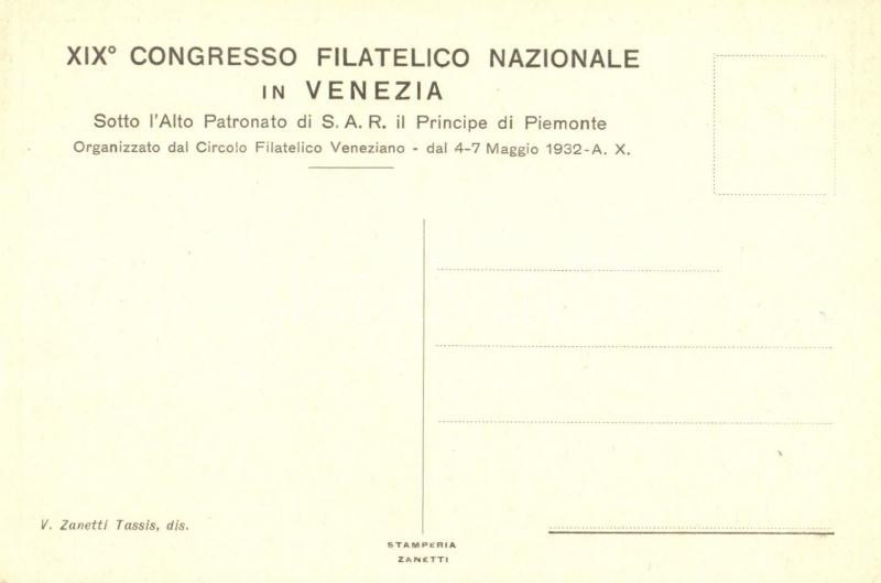 1932 XIX. Congresso Filatelico Nazionale, Venezia / 19th Italian National Philatelic Congress in Venice, advertisement card (EK)