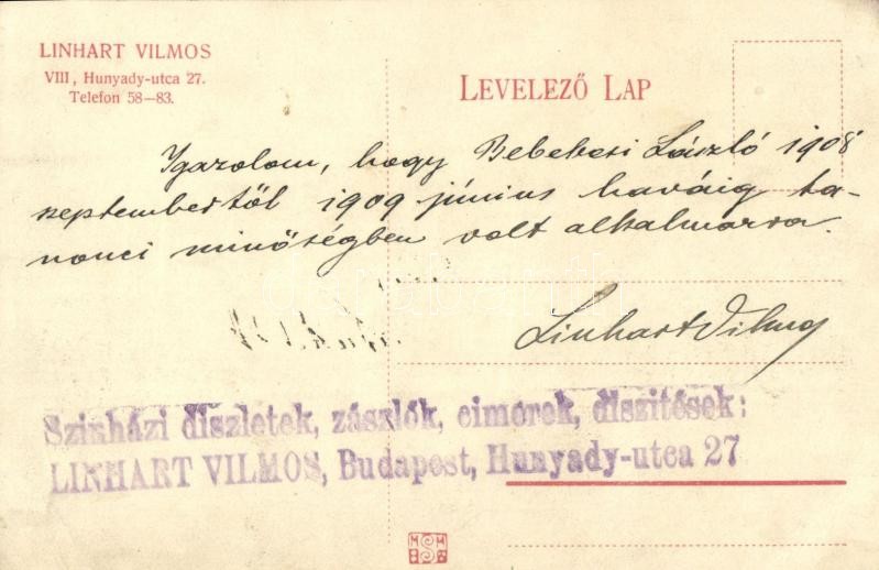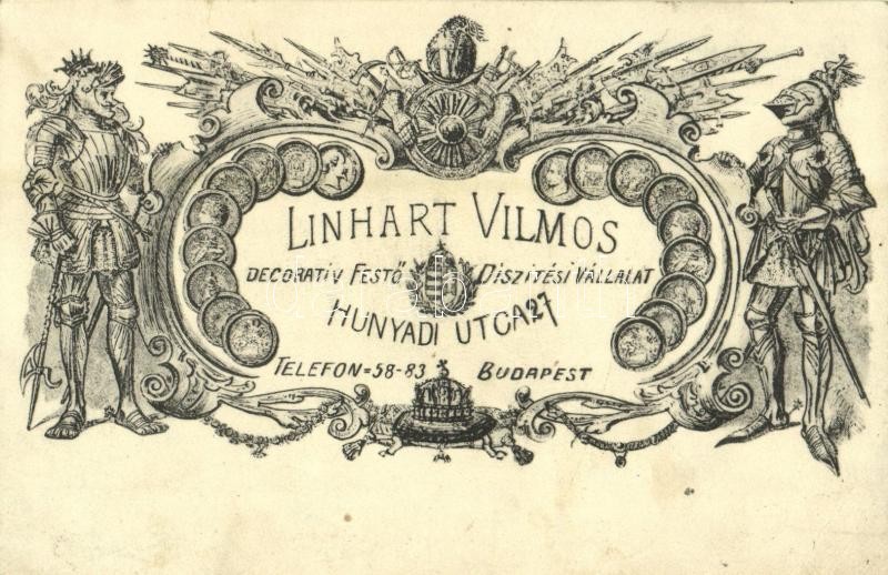 Linhart Vilmos decorativ festő díszítési vállalat reklámlapja. Budapes... https://www.darabanth.com/en/32-Major-auction/32.1/Postcards/Advertisement~13811/Linhart-Vilmos-decorativ-festo-diszitesi-vallalat-reklamlapja-Budapest-Hunyadi-utca-27-Hu~II2044334