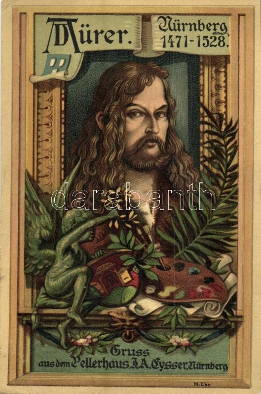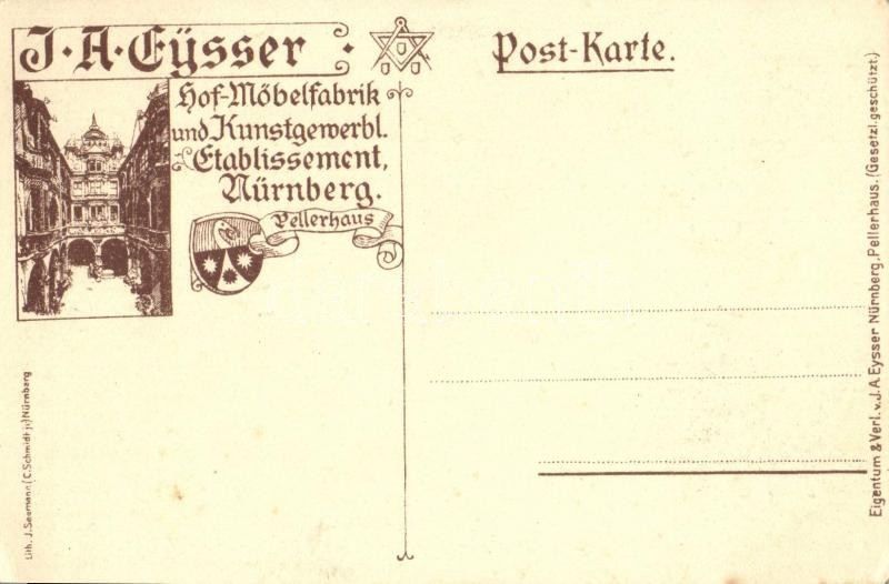 Nürnberg, Albrecht Dürer, 1471-1528. Gruss aus dem Pellerhaus J. A. Ey... https://www.darabanth.com/en/32-Major-auction/32.1/Postcards/Advertisement~13811/Nurnberg-Albrecht-Durer-1471-1528-Gruss-aus-dem-Pellerhaus-J-A-Eysser-Hof-Mobelfabrik-und-Ku~II2035525