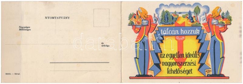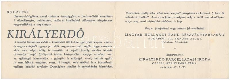 Tálcán hozzuk Önnek az egyetlen ideális vagyonszerzési lehetőséget! Királyerdő Parcellázási Iroda kinyitható reklámlapja. Magyar-Holland Bank Részvénytársaság / Hungarian parcel allocation folding advertising postcard s: Győry