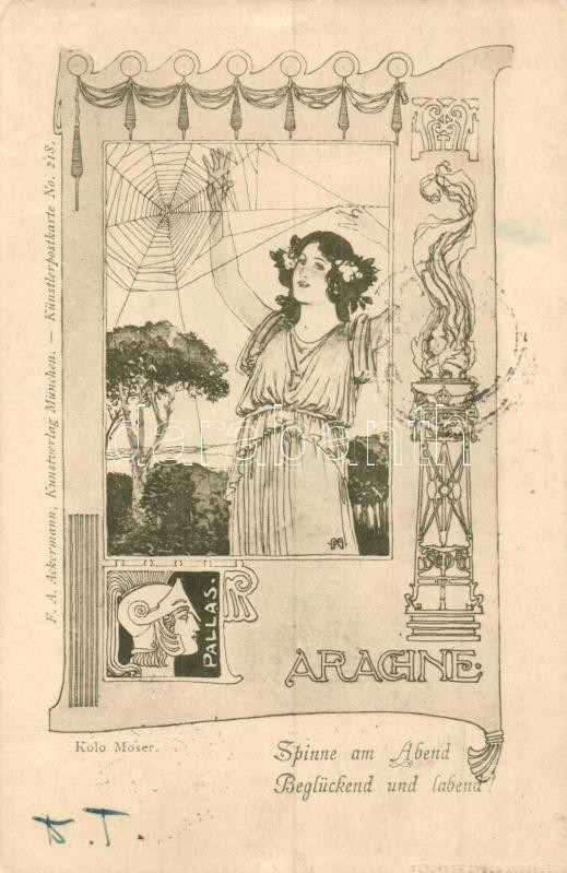 1899 Arachne. F.A. Ackermann Künstlerpostkarte No. 218. Art Nouveau s: Koloman Moser
