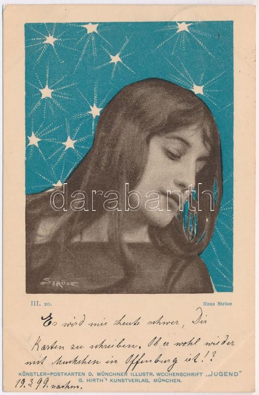 1899 III. 20. Künstler-Postkarten D. Münchner Illustr. Wochenschrift "Jugend" G. Hirth's Kunstverlag, München s: Hans Ströse