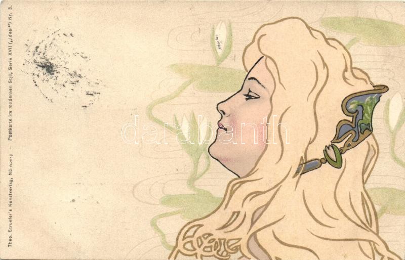 1900 Art Nouveau lady litho. Theo. Stroefer's Kunstverlag, Nürnberg - Postkarte im modernen Styl Serie XVII. "Ideal" Nr. 3., unsigned Meunier