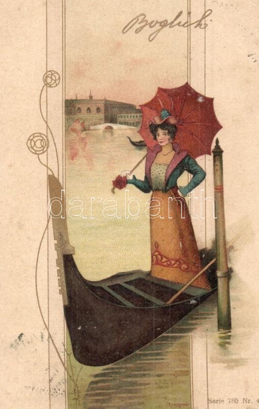 1902 Gondola in Venice. Hungarian Art Nouveau postcard. Serie 785. Nr....