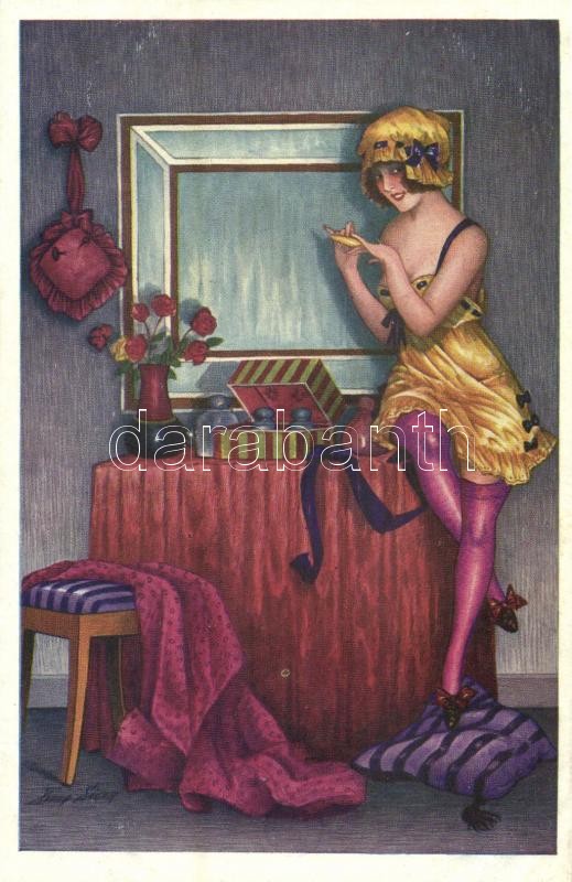 Cabinet de Toilette. Fantaisies trichromes. Paris, A. Noyer Serie No. 148. / French gently erotic art postcard s: Xavier Sager