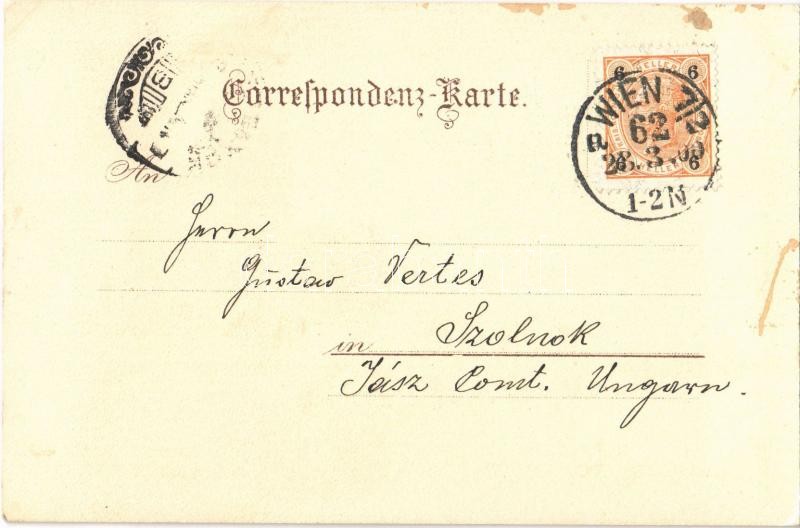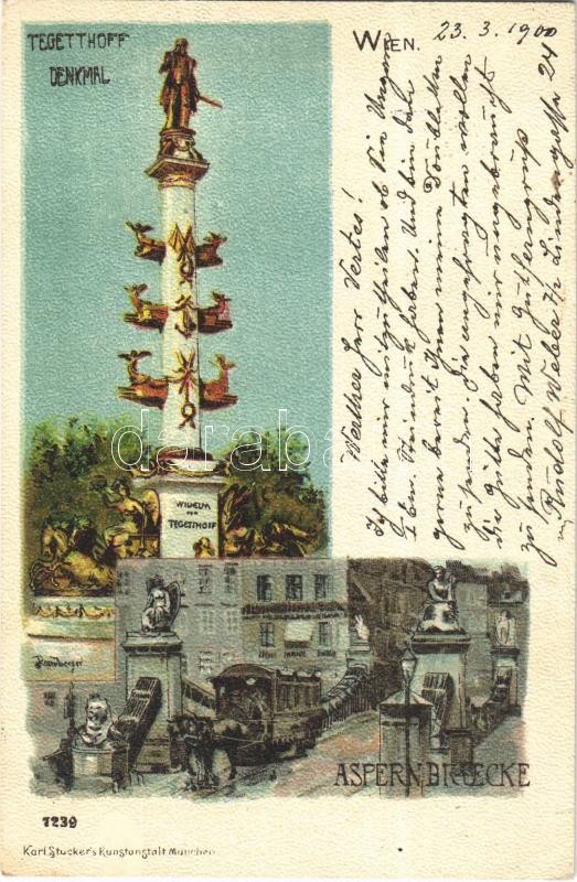 1900 Wien, Vienna, Bécs; Tegetthoff Denkmal, Aspernbrücke / statue, bridge, horse-drawn tram. Karl Stucker 7239. litho s: Rosenberger