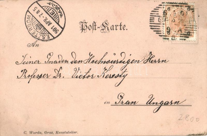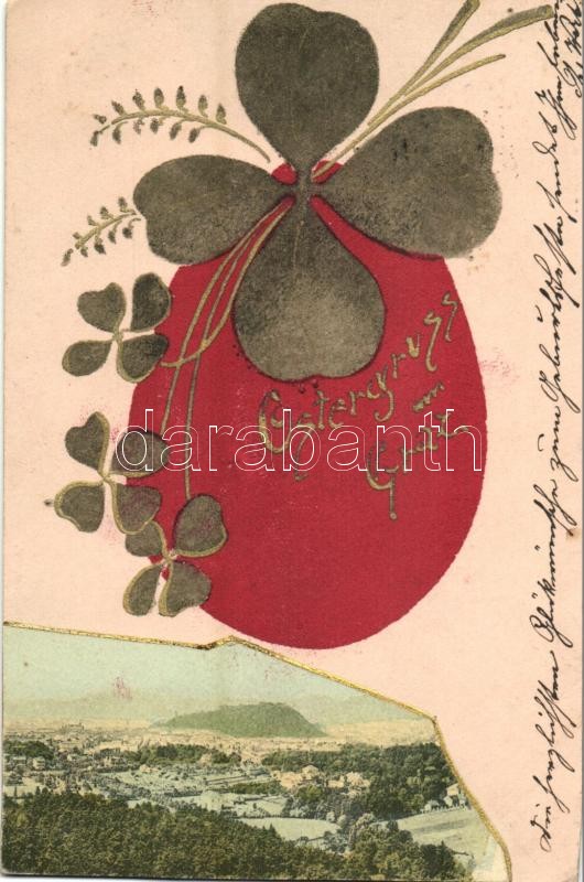 1901 Graz, Ostergruss / Easter greeting with egg and clovers. C. Wurda
