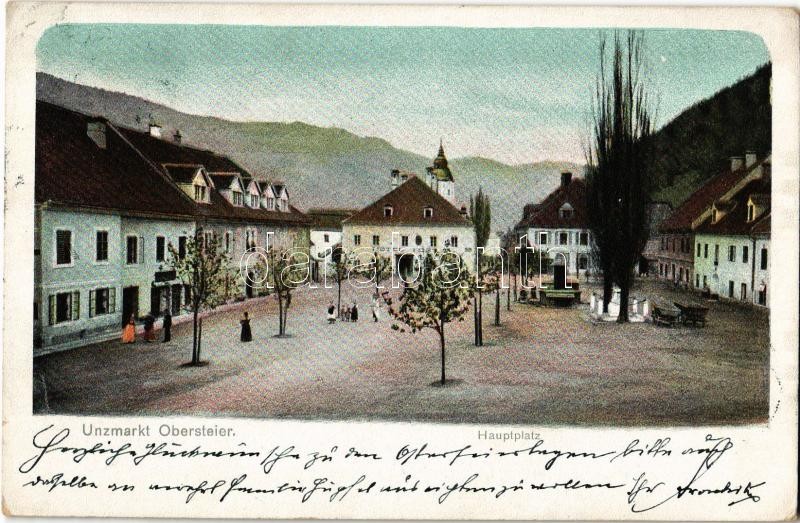 1902 Unzmarkt (Obersteier), Hauptplatz, Hotel / main square, hotel, shops