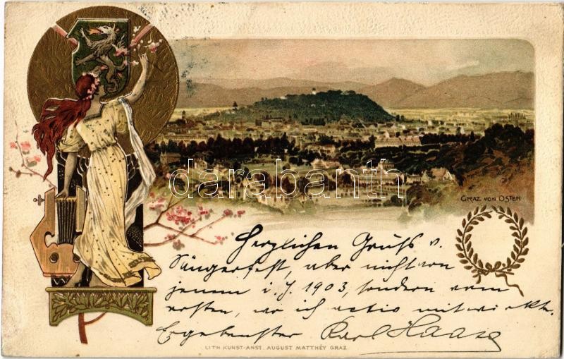 1906 Graz von Osten. Lith. Kunst-Anst. August Matthéy, Art Nouveau, Em...