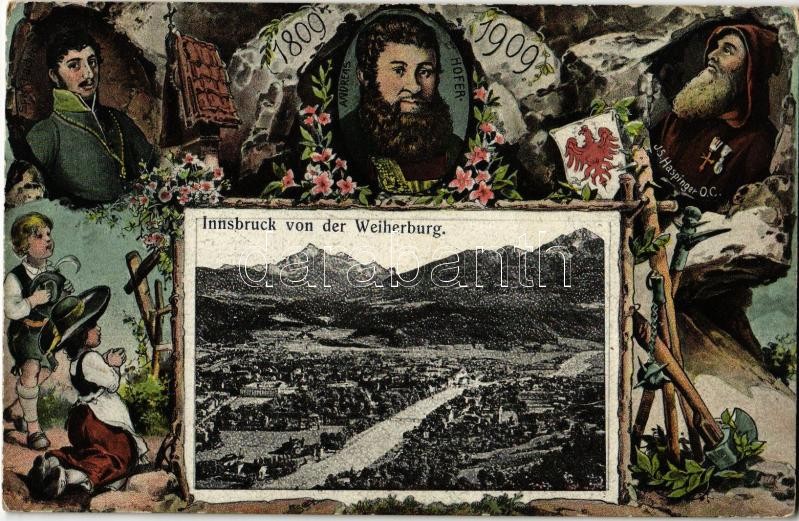 1915 Innsbruck von der Weiherburg 1809-1909 Tiroler Jahrhundertfeier. ... https://www.darabanth.com/en/32-Major-auction/32.1/Postcards/Austria~13739/1915-Innsbruck-von-der-Weiherburg-1809-1909-Tiroler-Jahrhundertfeier-Andreas-Hofer-J-S-Haspinger~II2029599