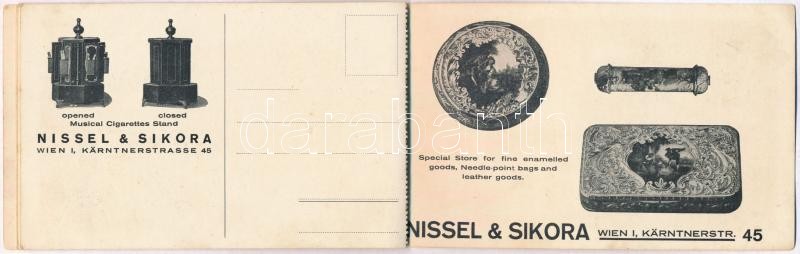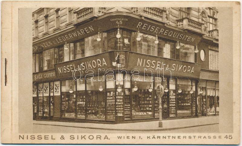 Wien, Vienna, Bécs; Nissel & Sikora Bronzen und Lederwaren und Reiserquisiten / Austrian shop's advertisement postcard booklet with 3 postcards