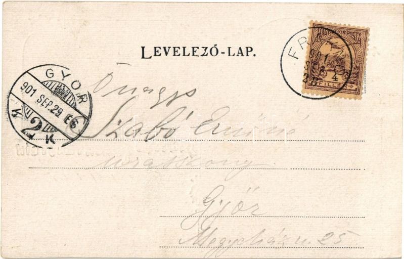 1901 Fraknó, Forchtenstein; vár, Andreas Wegscheidler vendéglője / Schloss, Gastwirt, Gasthaus / castle, restaurant. Art Nouveau, floral