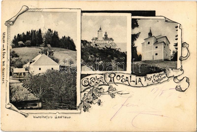 https://www.darabanth.com/en/32-Major-auction/32.1/Postcards/Burgenland~13731/1903-Frakno-Forchtenstein-var-Wurzlhofer-vendegloje-Rozalia-kapolna-Schloss-Gasthaus-R~II2027510