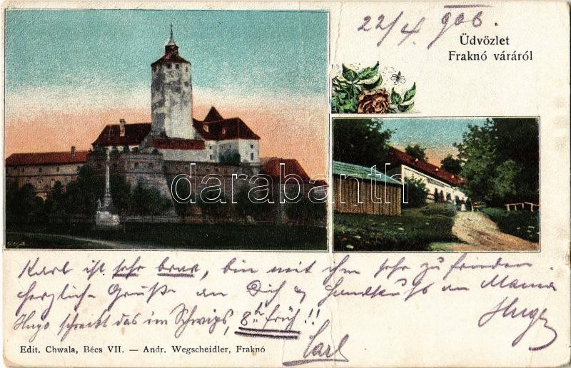 1906 Fraknó, Forchtenstein; vár, vendéglő. Andr. Wegscheidler / Burg, Gasthaus / castle, restaurant. floral (fa)