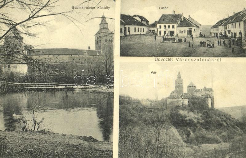 1911 Városszalónak, Stadtschlaining; Baumkirchner kastély, Fő tér, vár. Steiner Ferenc kiadása / Schloss, Hauptplatz / main square, castles
