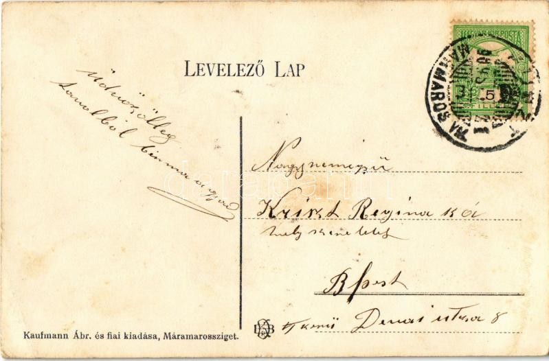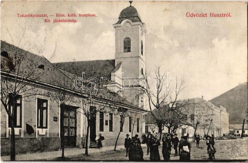 1909 Huszt, Chust, Khust; Takarékpénztár, Római katolikus templom, Kir...