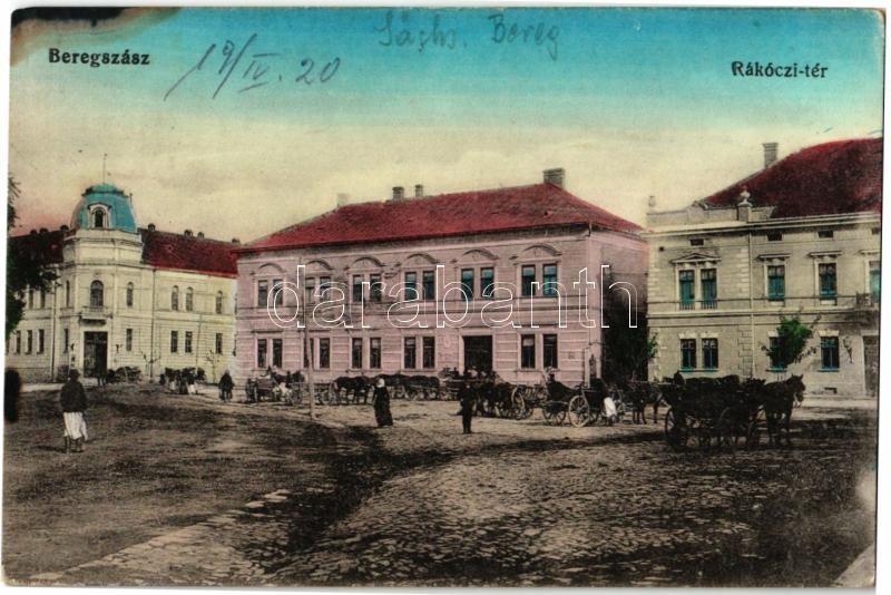 1920 Beregszász, Berehove; Rákóczi tér, Pénzügyi palota és posta hivat... https://www.darabanth.com/en/32-Major-auction/32.1/Postcards/Carpatho-Ukraine~13728/1920-Beregszasz-Berehove-Rakoczi-ter-Penzugyi-palota-es-posta-hivatal-piaci-arusok-szeke~II1976933