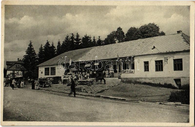 Alsóverecke, Niznije Verecki, Nizsnyi Vorota, Nyzhni Vorota; Orosz Nemzeti ház, autók / Rusky národni dom / Russian National House, automobiles